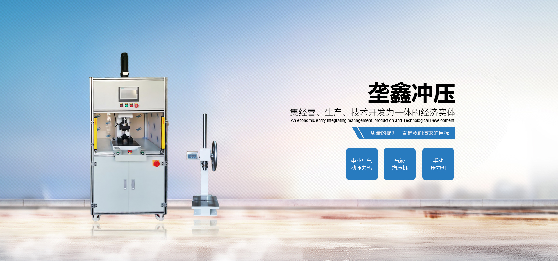 煙臺壟鑫沖壓設(shè)備有限公司是集經(jīng)營、生產(chǎn)、技術(shù)開發(fā)為一體的經(jīng)濟實體,專業(yè)致力于中小型壓力機、非標壓力機的設(shè)計開發(fā)和制造。在引進德國、日本等國家先進的鉚壓控制技術(shù)及機器設(shè)計理念的基礎(chǔ)上,結(jié)合相關(guān)行業(yè)的實際需要,開發(fā)出各種臺式、落地式氣動壓力機、手動壓力機、氣液增壓機、氣液增力缸、旋鉚機、無鉚釘鉚接機等鉚接設(shè)備。產(chǎn)品應用領(lǐng)域廣泛,適用于汽車零件、電子、電器、家電、包裝、五金、等行業(yè)。公司視質(zhì)量為生命,并一貫遵循對每一臺產(chǎn)品負責,對每一位用戶負責,真誠為您服務(wù)。 自公司成立以來,秉承“誠信,創(chuàng)新,專業(yè)”的經(jīng)營理念,以優(yōu)質(zhì)的產(chǎn)品,完善的售后服務(wù),樹立良好的品牌形象,服務(wù)于廣大新老顧客。我們竭誠于各位同仁攜手并進,共謀發(fā)展。